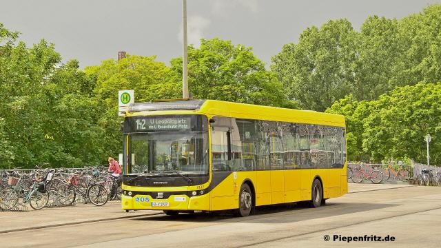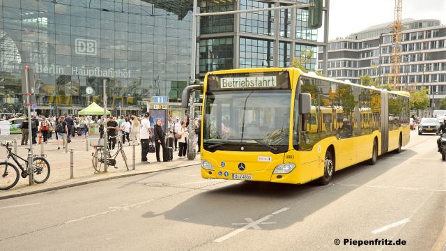 Die BVG hat etwa 1630 Busse in Betrieb. Einer davon ist der Alexander Dennis Enviro 500 Wagen 3696. Einen herzlichen Dank und Gruß an den netten Fahrer, der mir dieses Foto ermöglicht hat.