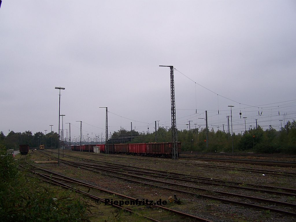 Hier ist auch nichts mehr los. Der Personenzugverkehr läuft hinter den Baumreihen auf dem Bahndamm.