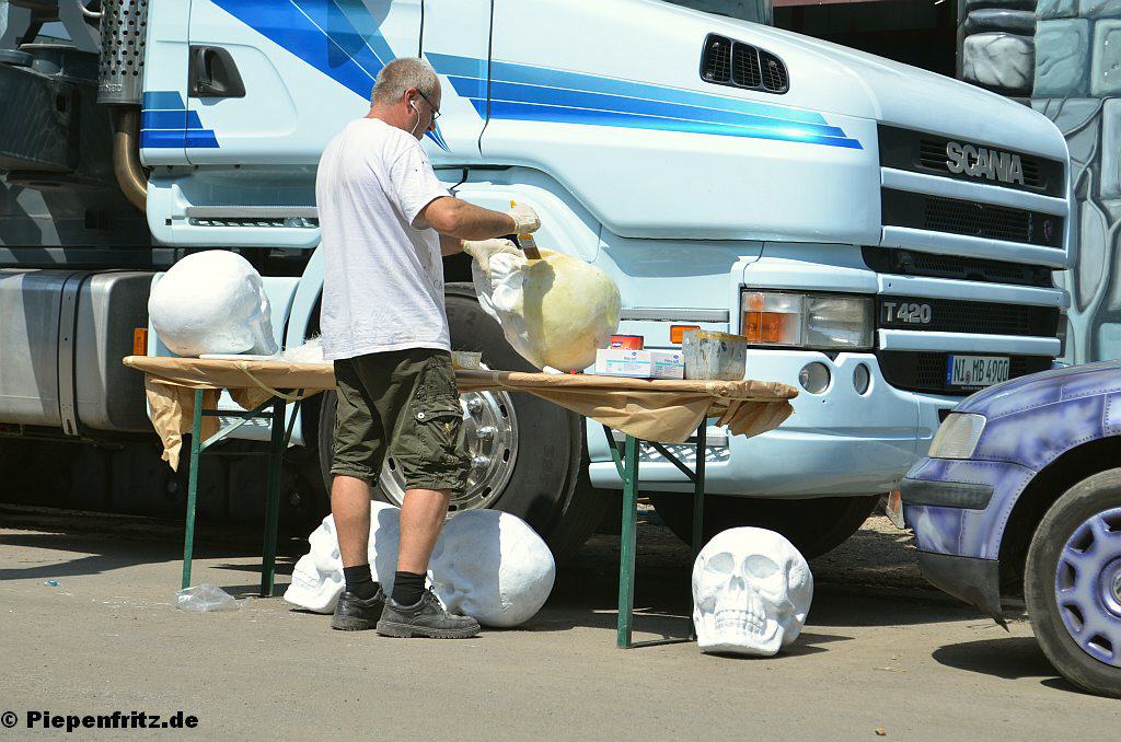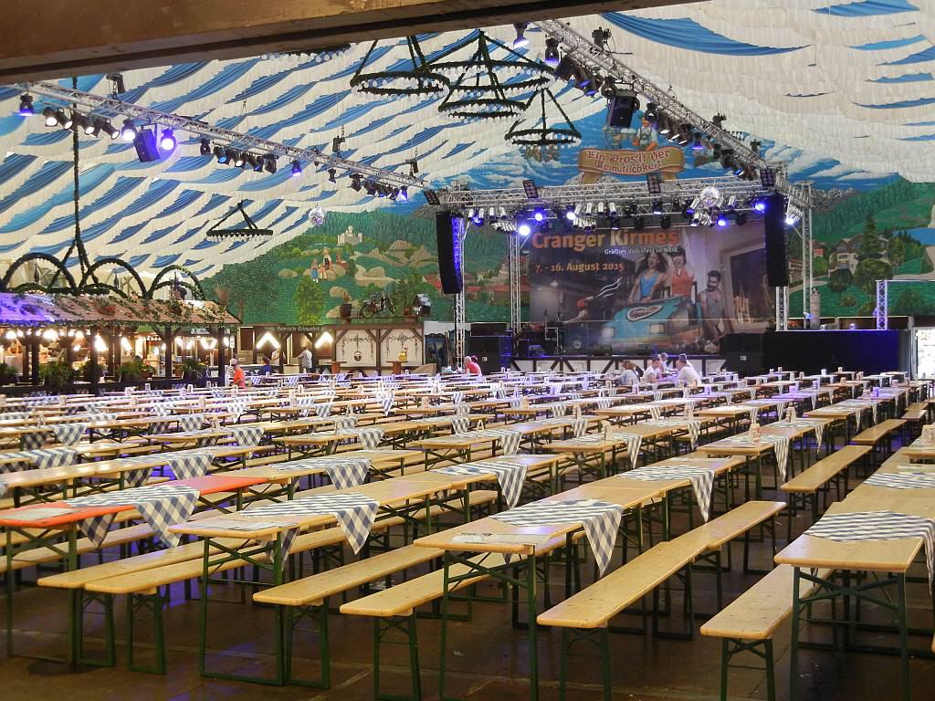 Aufbau 2006. Eigentlich wollte ich ja nur den LKW fotografieren. Aber ich habe mich nicht getraut, näher dran zu gehen. Der Boden (das Braune) war mir mangels Verschraubung zu unsicher. Der Herr von der anderen Seite hat wohl mehr Pavillion als LKW zu Gesicht bekommen.