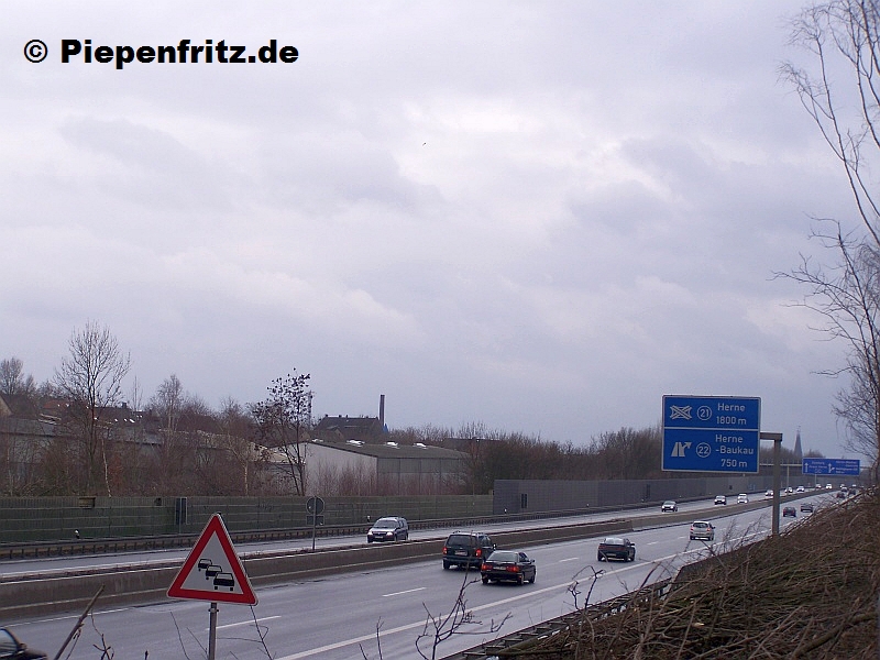 Mit Vergrösserungsoption! Nur selten bietet sich seit dem Jahr 1975 die Gelegenheit, von aussen auf die Autobahn zu sehen. In Herne-Horsthausen wurde im März 2010 ein Teilstück der Schallschutzwand erneuert. Für eine der wenigen möglichen Aufnahmen war daher das Wetter auch egal.