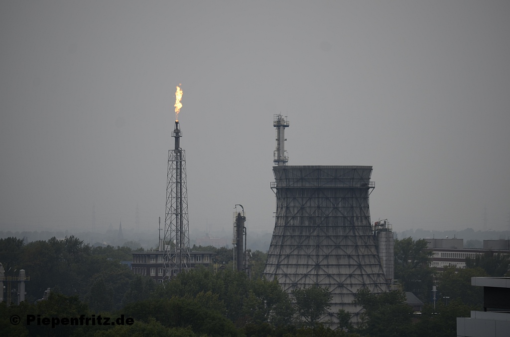 Das Wetter kann man sich leider nicht aussuchen. An diesem sehr trüben und von vielen Regenwolken verhangenen "Sommertag" im Jahr 2014 durfte ich in luftiger Höhe teils einzigartige Aufnahmen machen. Hier wird gerade auf dem Sasol-Werk auf der Holsterhauser Strasse "abgefackelt".